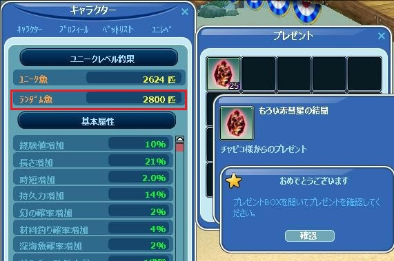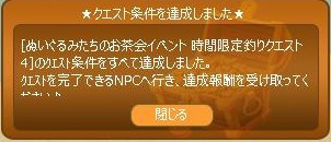 | 時限クエ完了&ランダム魚キリ番おめでとうです~!(^^)! |