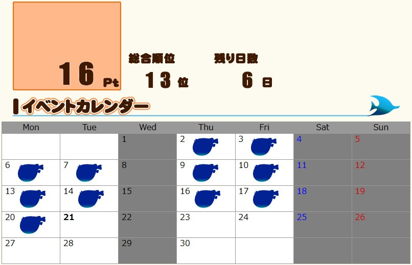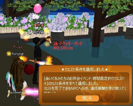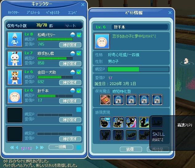 一斉餌やりで… 針千本が6レベにUP☆ 高速フリフリを覚えました! わかる?これが…高速フリフリ(。・ω・ノ)ノ【YO】お尻振ってますw 前から撮ると、よく分からんかった… スタートダッシュは良かったが、その後ダメで…やっと入賞w これで・・ 15㌽超えたぁああああああああああ!よち(*´ω`*)♪ 案内クエ&時限クエの4まで完了できました㋒∠( ̄∧ ̄) ビシッ 明日は通常メンテの日☆ アタイは定期な通院日[壁]´ω`)ノ゙))イッテクルネー♪ メンテ明けに(*´ω`)o【マタネ♪】o