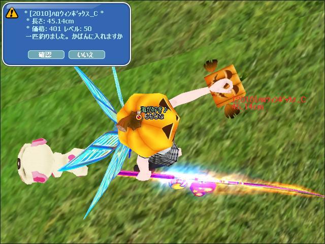 パパからもらった かぼちゃ帽子でかぼちゃ釣ってますw
