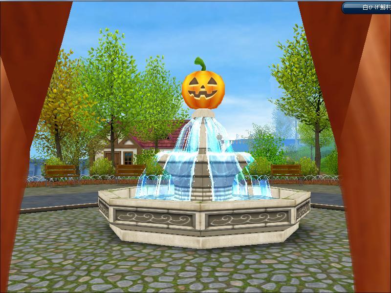 噴水の上にかぼちゃの顔…