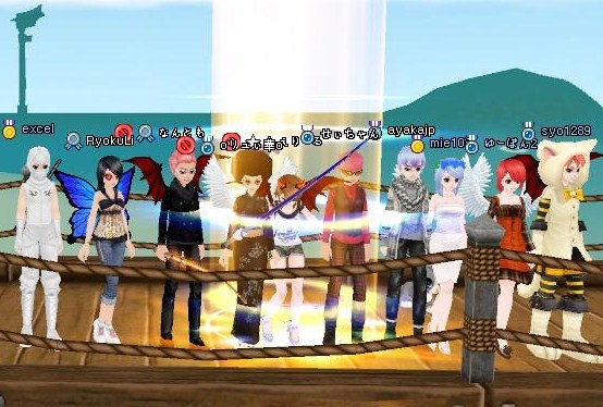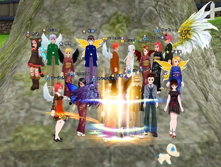 一緒に崖で釣ってたPTメンバの皆さんに宣言したら、他の方々にも声をかけてくださったので
