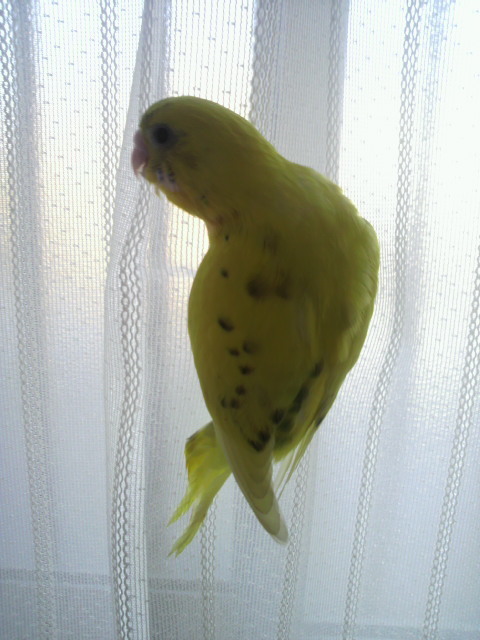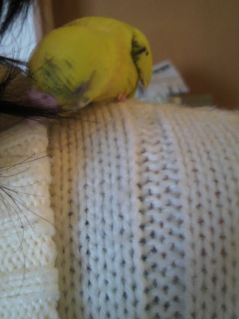 肩にとまって、モフモフしてますww
