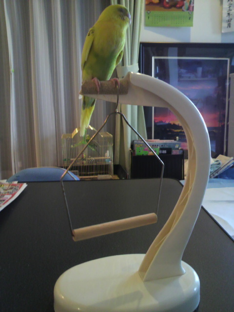 後ろに小さく見えてるのはみどりのケージ(かご)