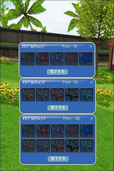 ハロウィンコレクションが始まったばかりだと言うのに、メンテ後からヒトデコレクションが始まった。