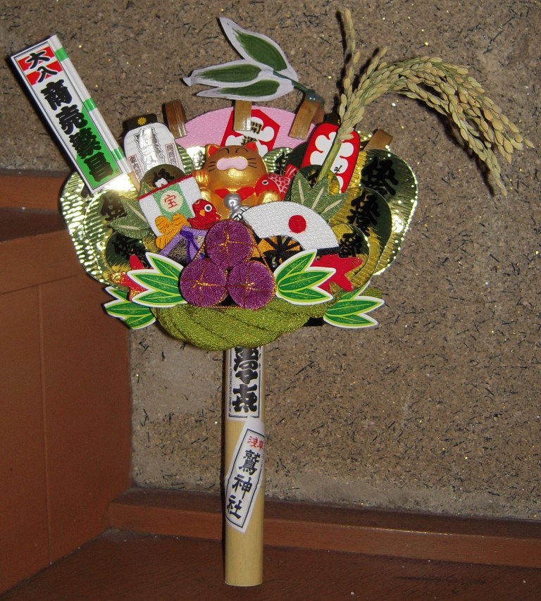 私も去年買った熊手を収めて来なくっちゃだわ。 |
