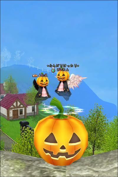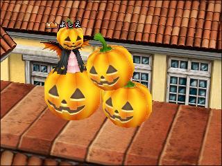 PS:かぼちゃにはまったら、思ったよりも中心部、自分のおなかあたりというかかぼちゃのヘタあたりをクリックして、走ったり歩いたりしない、止まる所をみつけて、同じところをクリック、壁抜けの要領で頑張ってみて下さい^^;