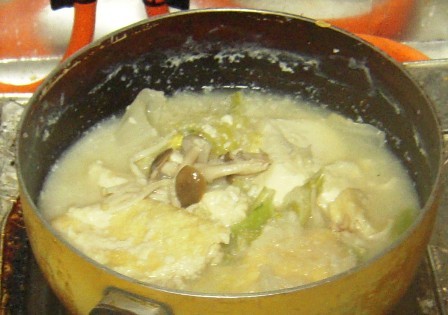 2.無調整豆乳1パック(200cc)と鰹出汁を使って豆乳鍋