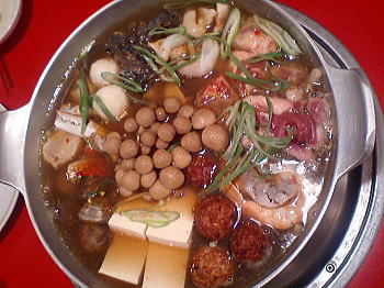カイ、鶏団子、キノコ、野菜もたっぷり