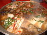 烏骨鶏(うこっけい)や鶏、豚、カニ、白身魚、エビ、イカ、