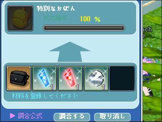 今回 期間限定で「特別なかばん」の調合が100%になりました。
