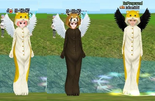 ふふふ、昨日のヤナはご機嫌麗しく、女性用コスがなんと5回で2個もできたんですよ~♪ラッキーでした。その後、男性用も5回でぶーにゃんとオソロのハム君が来ました。