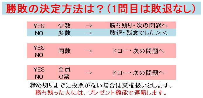 最終勝者が1or2人になるまでエンドレスで問題が続きます!!