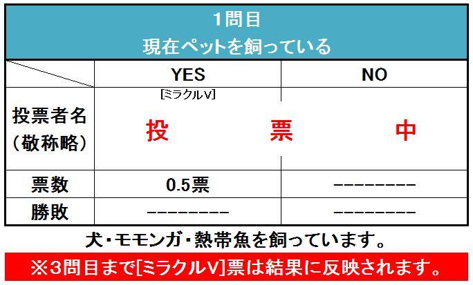 注意:1問目の回答は「ミラクルV」宛てにカードとメッセージでお願いします。