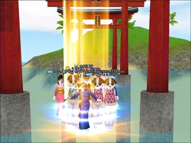 鳥居のところで、和風に合わせた長官と、我ら犬軍団。。。一応家族&ギルメンですw