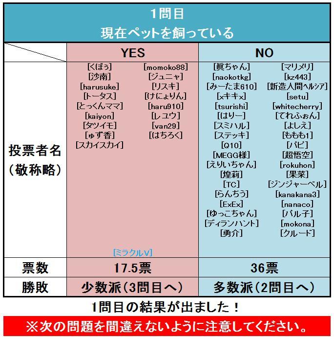 第15回 少数決ゲーム(1問目結果)