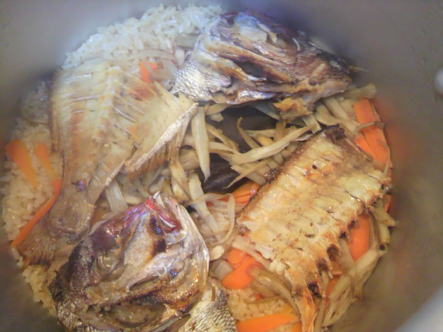 昨日の夕飯は、前日の鯛しゃぶのアラを使って・・・鯛めしw
