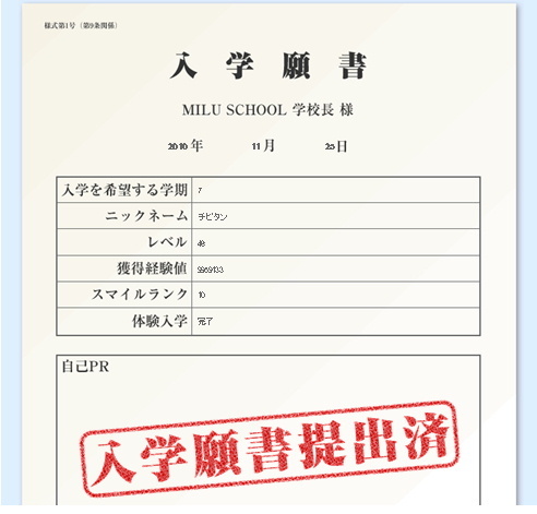 MILUスクール 第7期の願書 提出しました。