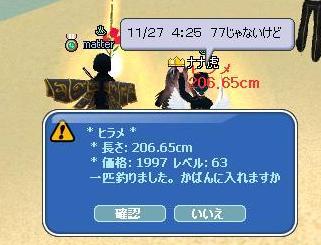 下5桁(777.77cm)のぞろ目ゲットでプレゼント