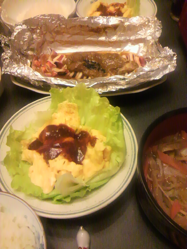前の日のデミグラ風ソースがあったので、スクランブルエッグにしましたw