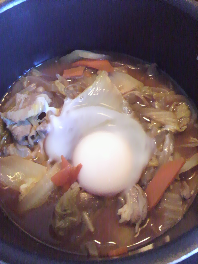 翌日のランチでは、豚汁の中に卵を落としてみましたw