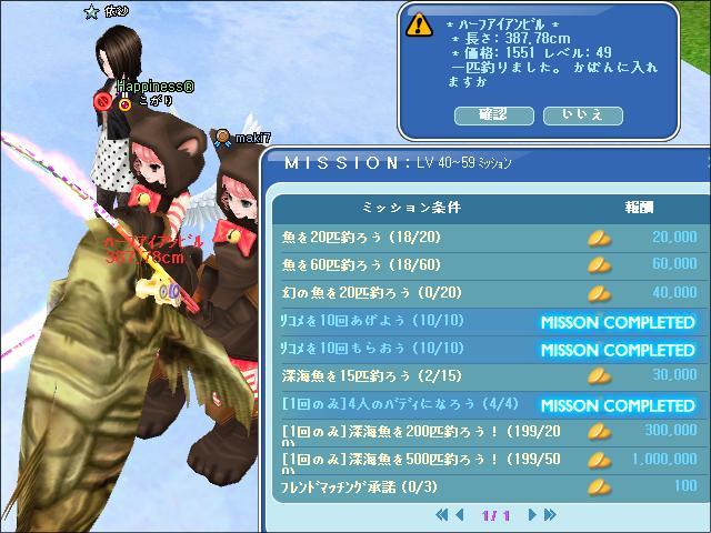 立て続けに3匹釣り上げて、深海200ミッションクリアです!