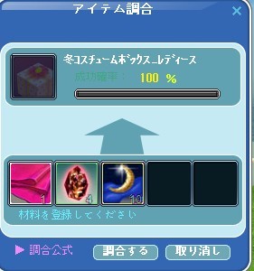 おいらもちと調合自粛です・・・・ってか駆け込みで全部使ったでし(´~`ヾ) ポリポリ・・・ |