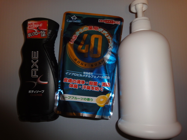 左は前回と違う香りのAXEのボディソープ。