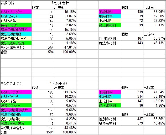 あれ?最上級と最下級材料がキングルより多い