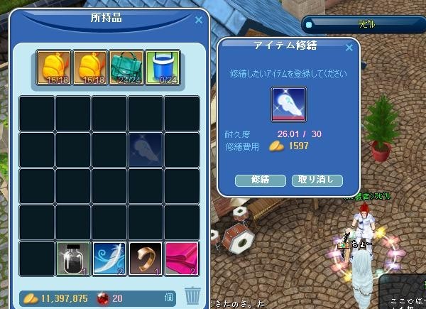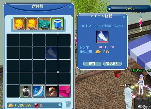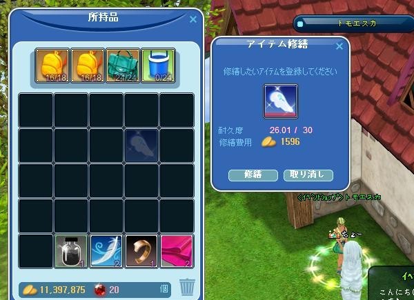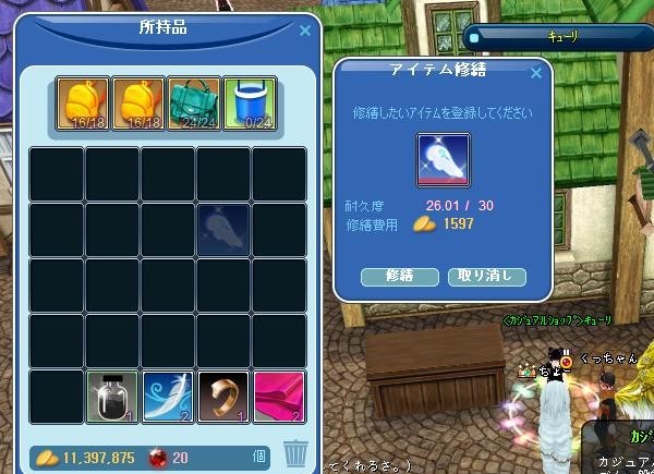 てな訳でGだけで修繕できるベビーエンジェル羽の修繕費は