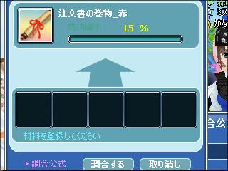 魅惑と赤インク各1個で作れる巻物赤は15%だけど1回で出来たなぁ・・・意外と40%や90%で失敗するんだろうね^^;