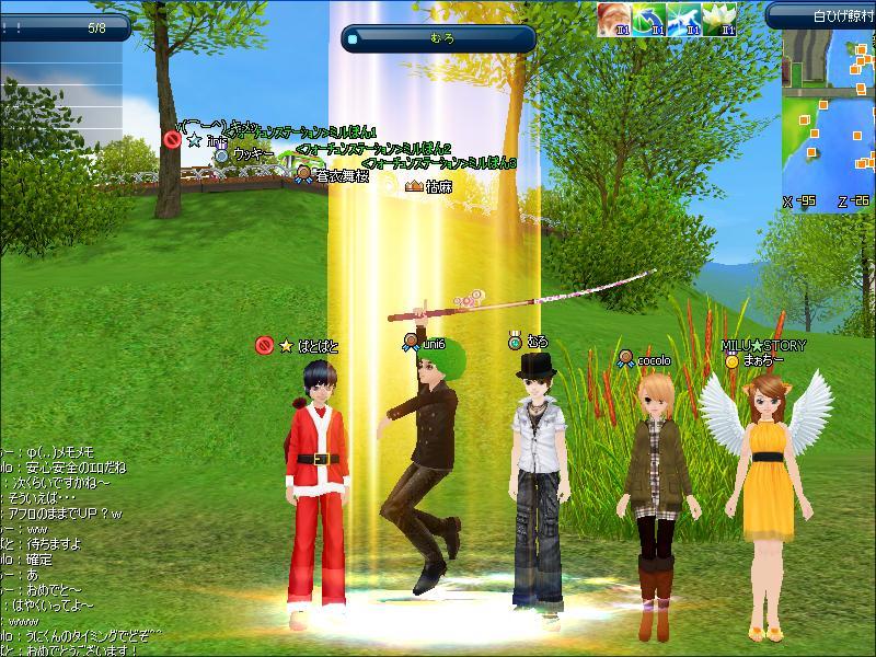 竿やら、ツノやら、羽が切れまくっていて、ほとんど、すっぴん状態だったので、時間が掛かりそうで、まぉち~さんを寝落ちさせるところでしたが、むろさんから、アフロやらトナカイやら借りまくって、フォローしてもらいました。