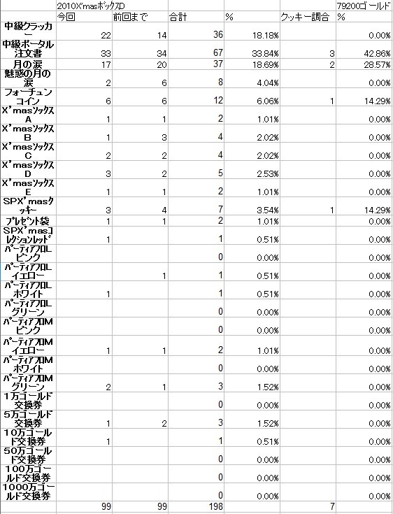 今回のセットから、spクッキーの使用した調合もデータどりすることにしました。