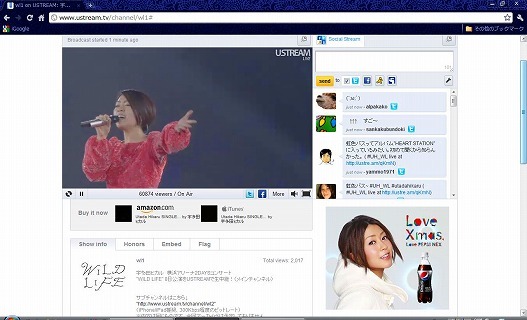 さてそのライブ中、ネットの画面でツイッターからの書き込みがリアルタイムで