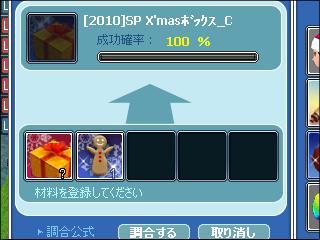※「[2010]X'masボックス」は、[2010]SP X'masクッキーと調合することで 「[2010]SP X'masボックス」へアップグレードできます! 金券等の確率がUP!?との事ですがw
