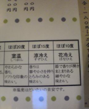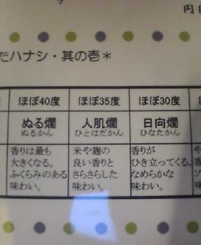 ひや、常温、ぬる燗、熱燗くらいあれば十分な気もするけど、