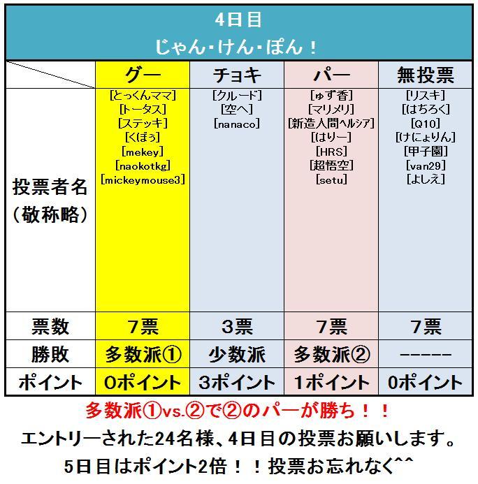 注意:2日目以降の投票は「ミラクルV」宛てにメールでお願いします。