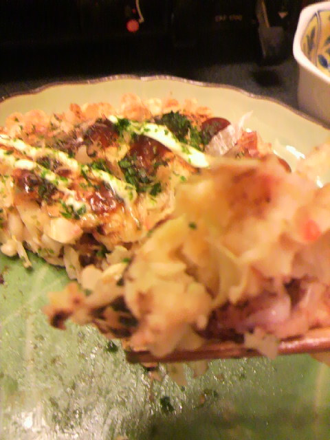 豚バラ・いか・桜えび・天かすなどの・・ミックスお好み焼き^^