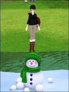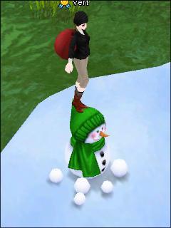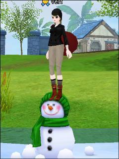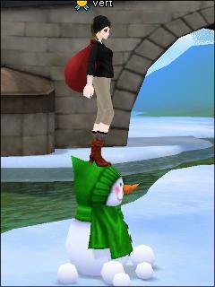 セシリアの小さな雪だるまの上に乗ってみました。こちらはリログ。