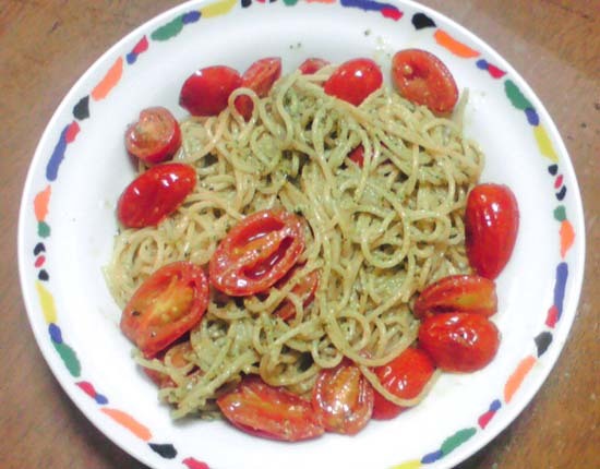 どちらも色が悪いですが、トマト入りジェノベーゼパスタと