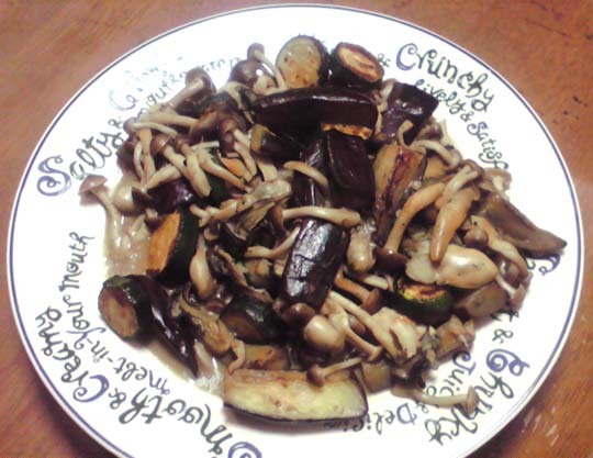 ナス・ズッキーニ・シメジ・牡蠣のガーリックソテーです。