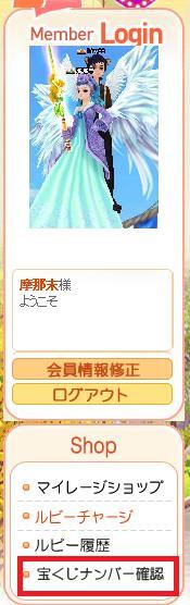 アバSSの下の『宝くじナンバー確認』クリック