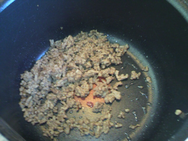 冷凍室にあった合いびき肉もレンジで解凍して、