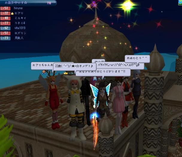 遅くなりましたが、掲載させて頂きますね☆先ずは、しろふりサンとランダムさんの~50UPでし4名様の同時UPでしたね~おめでとうございます^^皆様、綺麗に光ってましたよぉ~!節目なので・・代表して、おふたりにw(o*´∀`*)-o【しろふりサン&ランダムサン☆ラブラブ50UP☆才×〒゙├♪】 ☆.。.:*・゜☆PC修理入院から復帰されて、50まで頑張るって仰ってた~しろふりサン記念すべき50UPに立ち会うことができて、嬉しかったです♪お招き頂きまして~〃 ̄∇)ゞアリガトォーーーーーーーーーーーーーーー♪フレチャありがとね~ランダムさんこれからも、ヨロシクね☆■next■´∀`■next■´∀`■next■´∀`■続きましては…いつも、パパのびー君と・・夜鯖に遊びにいらしてくださる~エアリちゃんの22UPでし☆ロズリンちゃんが、皆を砂漠の建物上に案内して下さいました♪(o*´∀`*)-o【エアリちゃん☆22UP☆才×〒゙├♪】 ☆.。.:*・゜☆なかなか素敵なフォーメイションでしよね♪いつも元気をありがとう!これからも、ガンガンいっちゃって下さいね☆■next■´∀`■next■´∀`■next■´∀`■続きましては・・毎日、1回はイジリタクなる・・てか、行き場のないアタイのオアシスな~もと君の還暦UP☆早朝のアタイの彼女な❤まおりん❤と、お祝いできました♪(o*´∀`*)-o【もとそんサン☆還暦UP☆才×〒゙├♪】 ☆.。.:*・゜☆ さっそく60竿のお披露目でし何よりですww 服は要らないとの事で・・破産するわwwまおりんが作ってくれた~バサバサの羽で、強そうなトラに変身して・・ご満悦でしたよ☆茂みが好きな、オカシナ仲間達・・かなwwwこんなに頂いたら、お祝いになったのかしら~遠慮なく頂きましたが・・wサンキュ(* ゚̄ ̄)/・・・・・・・♪また、お部屋の様子でも・・日記にしますね♪これからも、お邪魔するよぉ~ヨロシクね☆