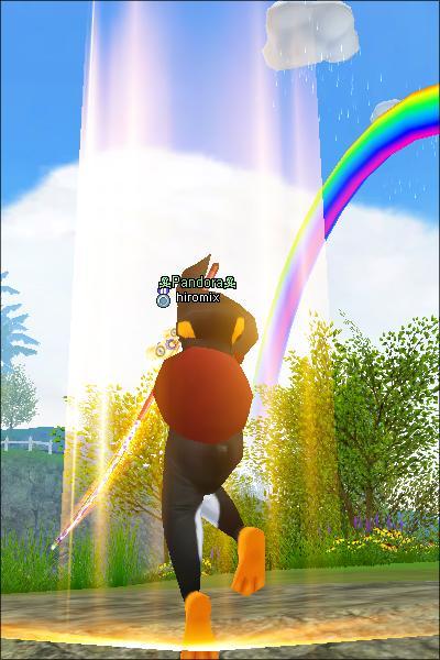 虹をバックに26アップ!
