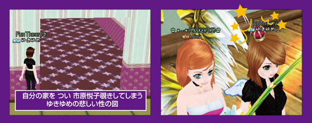右のSSは 砂漠ホリホリイベントの時にみくちゃんが出したクラウンをかぶらせてもらうゆきゆめの図。