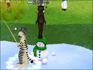でもって、黒豹で雪ダルマの上に着地!!