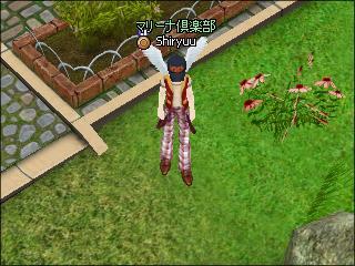 ロイの背後の芝生のあたり。