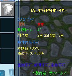 ホワイトタイガーイヤーはLv40からで耐久15日、経験・長さ2%のようですね^^