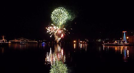 水面に花火も映って