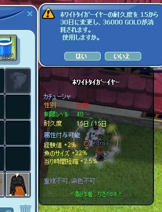 タイトル ホワイトタイガーイヤーを修繕可にしました^^   おすすめ(8) 2011-01-05 09:41:49